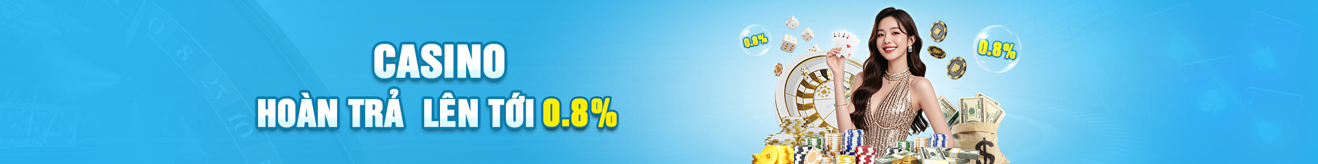 Thưởng 100% cho lần nạp đầu tiên tại Casino